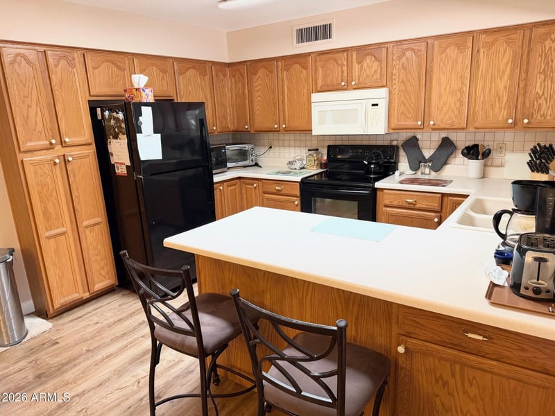 Listing details for 922 79th Way, Mesa, AZ 85208 : A beautifully maintained single‑level home in the highly desirable, gated 55+ community of Fountain of the Sun, Welcome to this inviting 2‑bed, 2‑bath residence featuring an open, functional layout and thoughtful upgrades throughout. The home offers 1,554 sq ft of living space with a bright, comfortable interior and a floorplan designed for easy living. The upgraded kitchen cabinetry adds warmth and style, while the split‑bedroom layout provides privacy for guests. A standout feature is the large finished AZ room, perfect as a hobby space, office, fitness area, or second living room. Step outside to enjoy Screened in Patio and a low‑maintenance lot. 2‑car garage with Built-In Storage Cabinets, Roof (2018) Heat Pump (2022)