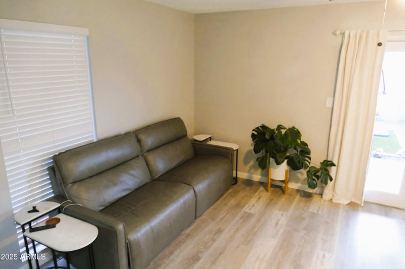 Listing details for 9238 47th Dr, Glendale, AZ 85302 : Beautiful Townhome with Updates Approx. 2 Yrs Ago. Features 3 Bedrms 2.5 Bath, End Unit on Corner Lot! Vinyl Plank Flooring Downstairs & in Upstairs. Beautiful Kitchen with White Shaker Cabinets, Black Tile Backsplash & Stainless-Steel Appliances. Ceiling Fans in Living Rm & Guest Bedrm. Can Lighting in Entrance Hallway & Coffered Ceiling with Chandelier Lighting in Dining Area. Dual Pane Windows & Sliding Arcadia Door in Dining Area. Large Master Bedrm with Rolling Closet Barn Doors. Double Vanity Sinks + Mirrors in Updated Master Bath. Also Features a Large 2 Car Garage w/Garage Door & Opener New in 2023, Dual Pane Arcadia Door in Guest Bedrm Replaced in 2024. Covered Patio & High-Quality Grass Turf in backyard. Looking for a Great Home Low Maintenance Home? This is it! Check it Out!