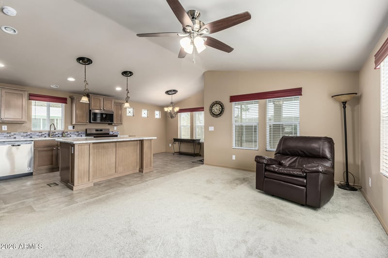 Listing details for 9302 Broadway Rd #117, Mesa, AZ 85208 : Move in ready 3 bed, 2 bath home in the desirable Holiday Palms 55 plus community. This well-kept property features a bright living area, ample kitchen storage, a spacious primary suite, and is partially furnished. Enjoy an expansive patio for covered parking, and onsite storage shed. Conveniently located minutes from major freeways and the airport, this active community offers a heated pool, spa, fitness center, pickleball and more.