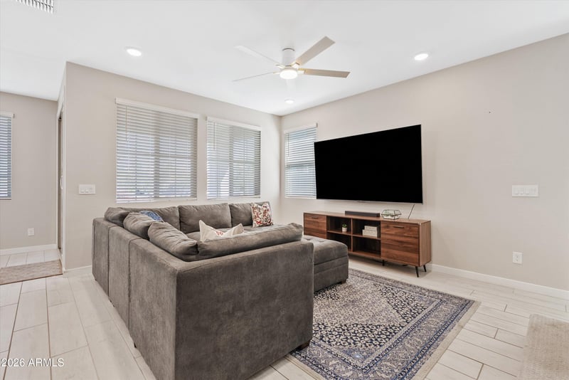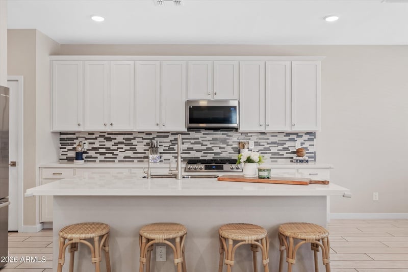 Listing details for 9310 Sequence Ave, Mesa, AZ 85212 : Welcome to life in the highly sought-after Eastmark, where comfort meets effortless style and access to parks, pools, splash pads, and much more. From the moment you walk in, you're greeted by light filled spaces, clean lines, and an open concept design that invites connection and entertaining. The heart of the home is the bright kitchen, where white cabinetry, quartz countertops, gas appliances, and a spacious island flow seamlessly into the living and dining areas perfect for gathering with friends or hosting with ease. Upstairs, soft carpet creates a cozy retreat with a private primary suite and flexible loft. Step outside to a covered patio and your own putting green an ideal space to relax, entertain, and enjoy Arizona's outdoor living.