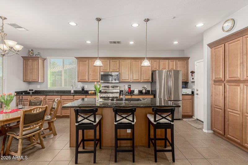 Listing details for 9322 Dreyfus Dr, Peoria, AZ 85381 : This could be your next ''New to You'' home! A move in ready, 3 bedroom, 2 bath, 1516 sq ft, open floor plan property features: 9+ foot ceilings, granite countertops, kitchen island, Gas range, generous raised panel maple cabinets, all tile floors and an oversize lot. Enjoy the quiet neighborhood with Loop 101 access to Arrowhead and Glendale Entertainment Districts.