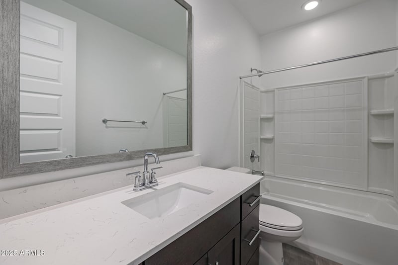 Listing details for 9327 Atlantis Way, Tolleson, AZ 85353 : Experience modern living in this stunning 4-bedroom, 3-bath home with a den and the Platinum Upgrade Package. Enjoy quartz counters, upgraded sinks, faucets, floor tiles, and a spa-like walk-in shower in the primary suite with dual sinks and a walk-in closet. The open layout boasts neutral tile floors, recessed lighting, and multi-sliders merging indoor and outdoor spaces. The kitchen features wood cabinetry with crown molding, stainless steel appliances, a pantry, and island breakfast bar. Smart home features include thermostat, locks, garage, and media panel. The backyard with covered patio is ready to be your retreat. Conveniently located near Estrella Mountain Regional Park, Costco, I-10, and shopping.