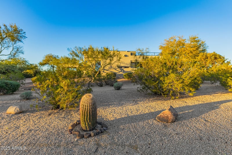 Listing details for 9350 Via Del Sol Dr, Scottsdale, AZ 85255 : Welcome to 9350 E. Via Del Sol Drive, a rare custom estate offering timeless architecture, exceptional privacy, and sweeping mountain and city-light views from nearly every room. Set on 1.5 acres at the end of a quiet cul-de-sac in coveted 85255, this 7,800-square-foot residence blends serene seclusion with effortless access to North Scottsdale's finest dining, shopping, and entertainment. Thoughtfully updated and impeccably designed, the home features a luxurious primary suite with private balcony, multiple ensuite guest bedrooms, refined entertaining spaces, a wine room, and expansive indoor-outdoor living ideal for both grand gatherings and quiet retreat. An oversized garage anchors the estate. Complimented by an expansive, indoor multi-purpose entertaining space -easily convertible in into a one-of-a-kind automotive showcase or private gallery. Together, these spaces create an unparalleled opportunity for the discerning car collector seeking both refined living and exhibition-quality presentation.