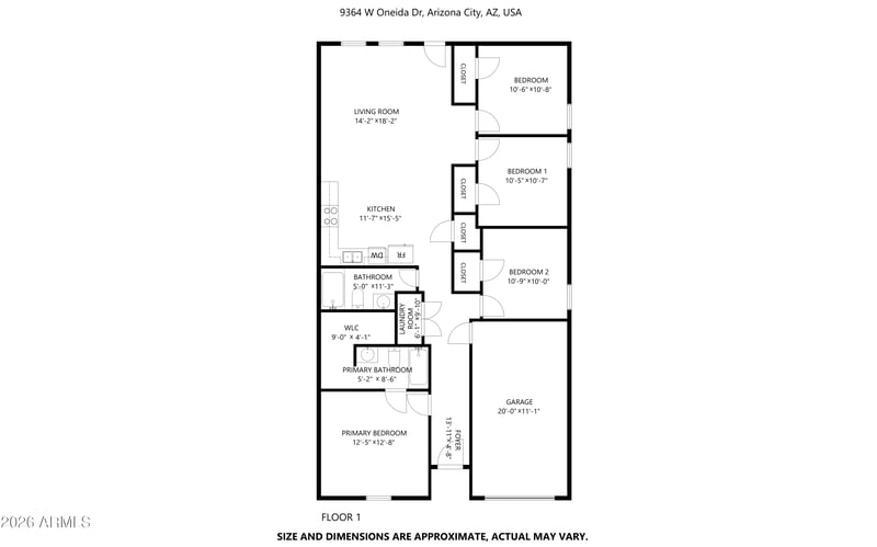 Listing details for 9364 Oneida Dr, Arizona City, AZ 85123 : This well-maintained home features updated fixtures and spacious rooms throughout. The property includes a functional kitchen and comfortable living areas for everyday use. This four-bedroom, two-bathroom property features a split bedroom floorplan that creates natural separation and enhanced privacy between living areas. The thoughtful design provides versatility for households of various sizes and configurations. Premium granite countertops throughout the interior spaces deliver both durability and visual appeal. Stainless steel appliances complement the contemporary finishes, offering reliable performance and sleek aesthetics that coordinate seamlessly with the overall design. The exterior showcases desert landscaping that embraces the natural environment while minimizing maintenance requirements. This water-conscious approach creates an attractive outdoor setting that thrives in the local climate conditions. With two full bathrooms strategically positioned to serve the four bedrooms efficiently, daily routines flow smoothly for multiple occupants. The combination of practical features and quality finishes creates a well-appointed living environment.