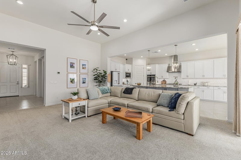 Listing details for 9381 Villa Chula --, Peoria, AZ 85383 : Come check out this highly upgraded 4 bedroom + den home in the desirable Meadows neighborhood in fast growing North Peoria! Inside this spacious floor plan from Maracay Homes, you will notice tons of luxury upgrades including 12 foot ceilings, chefs kitchen layout with oversized island, double ovens, pot filler, upgraded tile backsplash (2024), fully remodeled primary bathroom and closet (2024), and floor to ceiling sliding doors in both the living and dining rooms, reverse osmosis and water softening system, Tesla/EV charger (2025), new tankless hot water heater (2025), upgraded high quality carpet and padding throughout the home (2022). Step out in to the newly designed backyard featuring travertine tile, adjustable slatted pergola, and built in saltwater UV filtered spa with stacked stone exterior, high quality turf and curbing, and water efficient landscaping. In addition, this home is convenient to the freeway, top rated schools, hiking trails, Lake Pleasant, and all the new upscale amenities and growth in North Peoria make this home an awesome choice.