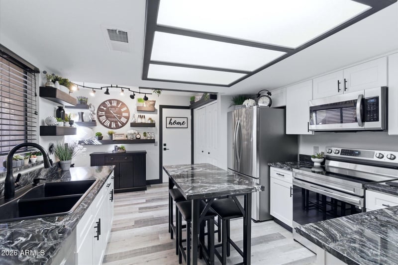 Listing details for 9427 Mcrae Way, Peoria, AZ 85382 : MOVE IN READY!! All Furniture Negotiable w/ separate bill of sale.Welcome to this beautifully updated home in Westbrook Village. Modern upgrades throughout, luxury vinyl plank flooring and upgraded carpet in the living room and spacious bedrooms. Upgraded kitchen cabinets ,granite counter tops, stainless steel appliances. Barn doors installed throughout house. Inside Laundry, Garage floor and back patio are epoxied. A/C updated 2026. Private community pool just steps away from property. Westbrook Village offers 2 large recreation centers including ballrooms, sports facilities, Pickleball, onsite RV storage, onsite Posse, two 18-hole Golf Courses and restaurants. If you're looking for a seasonal retreat or a year-round residence, this home offers comfort, convenience, and resort-style livin