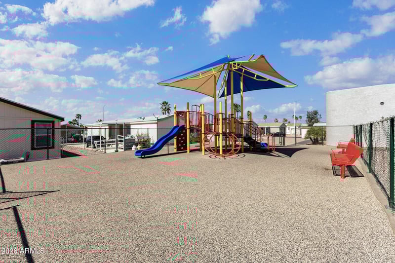 Listing details for 9431 Corabell Ave #65, Mesa, AZ 85208 : Enjoy Sitting on your front porch looking over the community pool and playground or hold a BBQ in your fenced rear yard that is landscaped with plush green artifical grass and landscaped borders. There is a Large kitchen and vaulted ceilings for an open and spacious feel. Appliances included in the sale are a Gas Stove, Dishwasher, Refrigerator and a Washer/Dryer. Highlighting the interior is a Modern, well-maintained home with upgrades throughout. There is a convenient Tuff Shed storage room out back. . The location is within walking distance to the elementary school, middle school, and high school. Two covered parking spaces are uncluded.