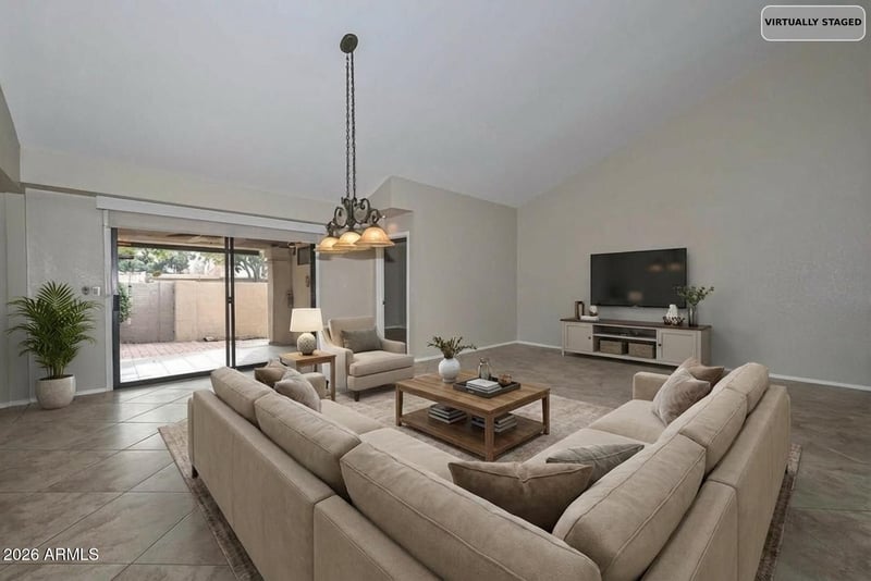 Listing details for 9441 Morrow Dr, Peoria, AZ 85382 : Unique remodeled &immaculate end unit patio home with Great Room,2.5 baths,office/den, spacious primary bedroom & private ensuite guest bedroom. Chef's kitchen open to living room, granite counter tops, island, wetbar, builtin wine fridge.Close to community pool.Gated front courtyard &private backyard with cov'd patio, citrus trees.Recent updates:int.paint '26, hot H2O '24, AC 4yrs.bath surrounds'21. Oversized garage w/cabinets & golf cart ramp.Westbrook Village is an Active Adult age restricted* (40+, rentals 55+) community-2 golf courses,restaurants,2 rec centers,htd pools,tennis,pickle ball,fitness center,social &hobby clubs. EZ access to 101,Spring Training,restaurants, shopping.Secure RV parking -subject to avail.* HOA for specific age requirements.Partially furnished-move-in ready