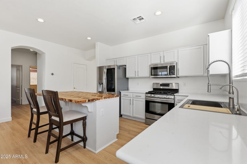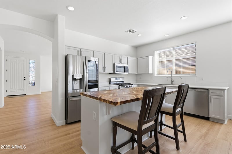 Listing details for 9451 Mary Ann Dr, Peoria, AZ 85382 : SINGLE-OWNER BEAUTY in the HIGHLY DESIRABLE DOVE VALLEY RANCH community has been PERFECTLY UPDATED and LOVINGLY CARED for*NEW GORGEOUS LVP FLOORING throughout main home and new carpet in bedrooms*Your KITCHEN has upgraded appliances, INCLUDING GAS STOVE, NEW QUARTZ COUNTERS and BUTCHER BLOCK TOP at ISLAND in Chevron pattern and SINK, PANTRY, refreshed cabinets, and FRESH PAINT THROUGHOUT*GREAT ACCESS TO FREEWAYS, SHOPPING, and TOP-RATED SCHOOLS*You have the BENEFIT of a 30-dollar monthly ''use'' credit with the APS OWNED SOLAR PANELS at no cost to you - or they can be removed*The EXCELLENT LOCATION is close to FREEWAYS, TOP SCHOOLS, SHOPPING, but you are tucked away with a PRIVATE BACK YARD surrounded by SINGLE STORY HOMES*COME BY and see why YOU WILL WANT TO CALL THIS PLACE YOUR ''HOME