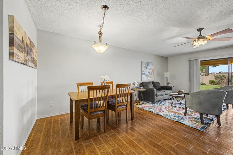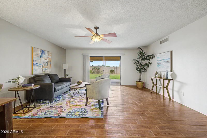 Listing details for 9451 Mcrae Way, Peoria, AZ 85382 : Discover this immaculate townhouse in the desirable active adult golf course community of Westbrook Village. This ''Ironwood'' model in Lakeside Terrace features a spacious, sun-filled living area, two generously sized bedrooms, and a two-car garage with direct entry to the home. Interior highlights include updated tile flooring, refreshed kitchen countertops, tile surrounds in both showers, and indoor laundry. Enjoy the Arizona weather from your private patio or resort-style amenities such as heated pools, spas, golf, and walking/biking paths. With built-in garage cabinets and a prime location near Arrowhead Mall, P83 restaurants and shopping, Loop 101, Spring Training facilities and just 30 minutes to the Phoenix airport, this home offers the perfect balance of relaxation and convenience