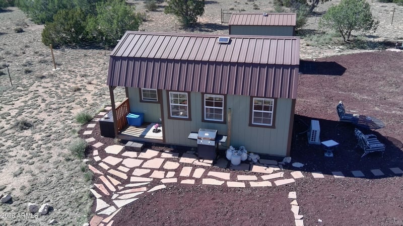 Listing details for 9457 Bright Sky Trl #967, Williams, AZ 86046 : FULLY FURNISHED DOWN 2 THE UTENSILS * VIEWS, VIEWS, VIEWS * PRIVACY & STARS * FANTASTIC COUNTRY ROAD TO THIS PERFECT PROPERTY EASILY ACCESSIBLE WITH 2-WHEEL DRIVE * OUTSTANDING 13 WINDOW, 2 DOOR CUSTOM TINY HOME W/ DETACHED 8X12 STORAGE SHED * ABLE TO SLEEP 6 W/ DOUBLE LOFTS & COMFY FUTON * UNIQUE BRAND OFF GRID APPLIANCES * DC FRIG, 4 BURNER PROPANE GAS STOVE * DC MINI-SPLIT * COMPOSTING TOILET & LARGE STAND-UP SHOWER/TUB * POWERFUL SOLAR INCLUDING SOLAR POWERED ROOF VENT FAN * INSTANT HOT PROPANE WATER HEATER * COMPACT EURO-STYLE WASHING MACHINE * INSULATED WALLS & SOLAR COMPONENT ROOM * DOUBLE DRIVE THRU AG GATES * 2 WALK THROUGH GATES TO ACCESS ENTIRE PROPERTY * APPROX HALF ACRE FENCED IN AREA * 3000 GALLON CISTERN WELL * OWNER MAY CARRY