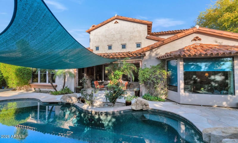 Listing details for 9463 Sonoran Sunset Ps, Scottsdale, AZ 85255 : Located in the prestigious gated community of DC Ranch, this exceptional estate blends timeless elegance with resort style living. Offering 6 bedrooms and 5.5 bathrooms, this floor plan features expansive living spaces, soaring ceilings, rich architectural details, and seamless indoor-outdoor flow. The chef's kitchen anchors the home with generous cabinetry, oversized island seating, and effortless connection to the great room. Step outside to a private backyard oasis with a covered patio, lush landscaping, and tranquil pool setting. The primary suite is a true retreat, complete with a spa-inspired bath and boutique-style closet with spiral staircase. 3rd-car garage conversion creates a dedicated fitness studio. DC Ranch offers its residents an unparalleled lifestyle with an impressive collection of resort-style amenities designed for both relaxation and recreation. Homeowners enjoy access to multiple private community centers featuring sparkling pools, spas, fitness facilities, tennis and pickleball courts, and miles of scenic walking and biking trails that wind through the natural Sonoran Desert. The community is known for its meticulously maintained common areas, lush greenbelts, and sweeping mountain views, all within a secure, gated environment. DC Ranch also hosts year-round social events and gatherings that foster a true sense of community, while its prime location places residents just minutes from world-class golf courses, upscale shopping, fine dining, and outdoor adventures in the McDowell Mountainsdelivering a refined Scottsdale lifestyle that's both active and effortlessly luxurious.