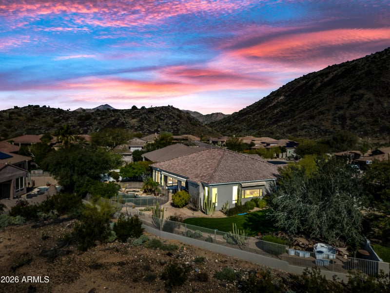 Listing details for 9468 135th Way, Scottsdale, AZ 85259 : A rare and unique offering of a spacious contemporary semi-custom home, close to the cosmopolitan conveniences of affluent North Scottsdale, yet secreted within the ULTIMATE pristine privacy of the Sonoran Desert behind the gates of the truly iconic upscale private community of Carino Canyon. An exquisite four bedroom with en-suite hosts BREATHTAKING 360 VIEWS, city lights to desert mountain views. This contemporary yet timeless residence offers a spacious open split floor plan with over 3,200 sq ft. The superior craftsmanship is evident, top-tier amenities, exquisite modern finishes and a chef's kitchen. Step outside to discover a breathtaking outdoor oasis, over a 1/4 acre (.36 acre). Featuring a large captivating Heated SALT water pool with spa. This al fresco retreat is an idyllic backdrop for intimate gatherings or grand-scale entertaining with views of the mountains and national forrest behind for the ultimate privacy. There is an ample three car garage, storage and workshop.