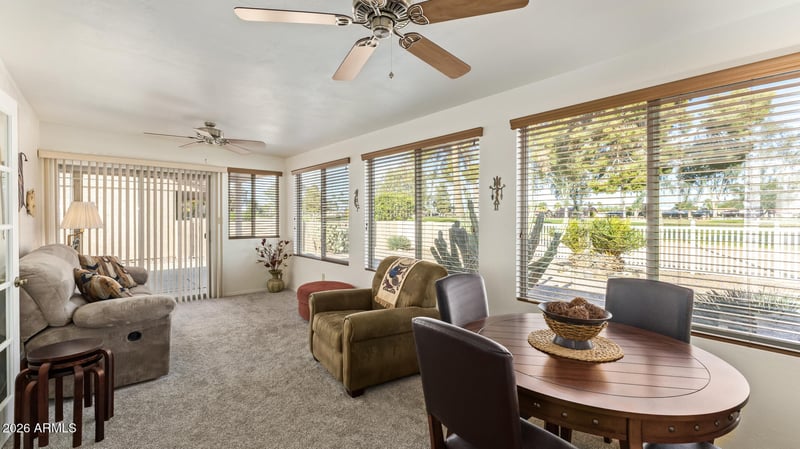 Listing details for 9474 Sun Lakes Blvd, Sun Lakes, AZ 85248 : This light, bright, and move-in-ready two-bedroom, two-bath home has been exceptionally well cared for and comes fully furnished, making it truly ready to enjoy from day one. This golf course lot is complemented by the open and inviting floorplan, filled with natural light and comfortable living space. Step into the Arizona room, where you can relax year-round while taking in peaceful golf course views, or head outside to the spacious covered patio—the perfect spot for morning coffee, evening sunsets, or entertaining friends. Sun Lakes living offers world-class amenities including golf, swimming, tennis, pickleball, and countless social activities—all just steps from your door. This is more than a home; it's a community and a way of life. Whether you're looking for a full-time a seasonal retreat, or a turnkey investment, this home checks all the boxes. Homes like this on the golf course, fully furnished, and truly move-in ready don't come along often. Don't let this one slip through your fingers.