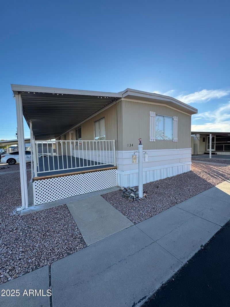 Listing details for 9501 Broadway Rd #134, Mesa, AZ 85207 : SELLER FINANCING with 10% DOWN! Discover the comfort and charm of this manufactured home located in the pet friendly gated active retirement community of Cielo Grande. Currently under renovation, this cozy corner unit offers a 14×60 sq. ft. layout with 2 bedrooms and 2 bathrooms, providing the perfect space for relaxing and enjoying your retirement years in a secure and friendly environment. The home's prime location and thoughtful design make it an ideal retreat for those seeking a vibrant, welcoming community. Residents enjoy a variety of amenities, including a swimming pool, spa, clubhouse, shuffleboard court, billiard room, library, laundry facilities, fitness center, pet park and Wi-Fi. Don't miss the opportunity to make this wonderful community your new home.