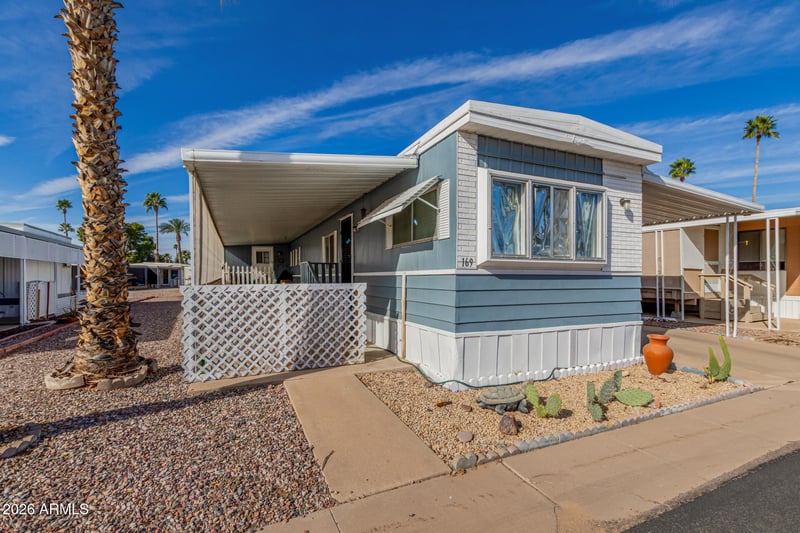 Listing details for 9501 Broadway Rd #169, Mesa, AZ 85208 : Split bedroom plan - 2 bedrooms with 2 bathrooms! Gas Cooking! Seller moving out of state and wants it sold yesterday! There is a bonus room with a window a/c unit not included in the square footage. Park Lot lease will be 920.97, Plus Water is 32.97, Sewer/Septic is 34.70, Trash is 25.45, Property Tax is 16.03 - TOTAL monthly fee is $1030.12 due monthly. Must qualify for park lot lease to purchase.