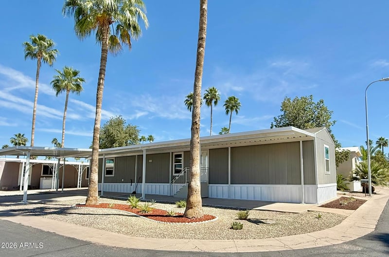 Listing details for 9501 Broadway Rd #174, Mesa, AZ 85208 : ***Seller Financing Available*** Be the first to own and live in this brand new 2025 Clayton manufactured home, ideally located on a large corner lot in the desirable Cielo Grande 55+ community. This never-lived-in, energy-efficient home offers 966 square feet of thoughtfully designed living space with a 3-bedroom, 2-bath split floor plan, perfect for full-time living, seasonal residents, or downsizing without compromise.