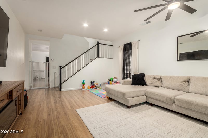 Listing details for 951 Fruit Tree Ln, San Tan Valley, AZ 85143 : Move in ready 4 bedroom in Skyline Ranch. Updated kitchen quartz countertops, painted cabinets with modern hardware, stylish backsplash, and stainless-steel appliances and large pantry. Luxury vinyl plank flooring throughout- no carpet, Great room and formal living room downstairs, large loft—perfect for playroom, or second living area. The large primary suite offers a separate tub/shower. Other 3 bedrooms all upstairs. Outside, enjoy a large backyard designed for easy living with turf and pavers with low maintenance, ideal for entertaining. Walking distance to Skyline Elementary school. Conveniently located near shopping, dining, schools, and commuter routes, Minutes from San Tan Regional Park.