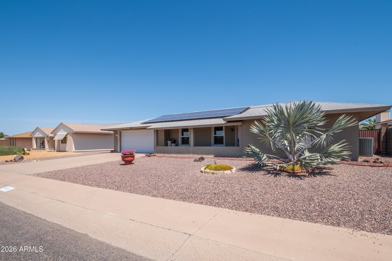 Listing details for 9510 Hidden Valley Cir, Sun City, AZ 85351 : What an amazing home w/ many updates, a perfect location, & an entertainer's paradise. The home has been expanded to include a family room & an additional space, providing the option for a 3rd bedroom or a nice-sized den/office. The beautiful kitchen has granite countertops, a breakfast bar, & an adjacent dining area. The home has a tiled entry welcoming you into the living room, followed by a comfortable flow between the kitchen, dining, & family room. Skylights & solar tubes provide natural light. Just off the dining area is the tiled AZ room w/ access to the outstanding outdoor kitchen, 2 covered patios, & a large private fenced backyard. The bedrooms have large closets, & the bathrooms have been updated w/ granite & walkin showers. There is ample storage, w/ 2 additional secure rooms off the garage, providing inside and outside access. The garage offers numerous cabinets and a workbench. Solar helps keep the electric bills down. Welcome to this ideal Sun City home!