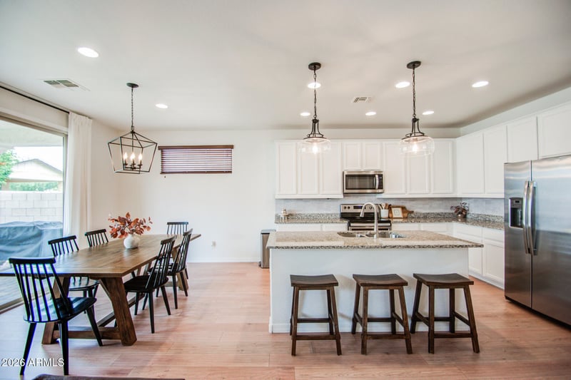 Listing details for 9540 Travertine Ave, Mesa, AZ 85212 : Welcome to this well maintained, immaculate 4 bedroom, 2 1/2 bath home in the popular Cadence at Gateway neighborhood. This home features a functional floorplan that includes a downstairs private den and a spacious loft upstairs for extra living space. Primary bedroom and laundry located upstairs with 3 bedroom. The kitchen has a large granite island with lots of counter space, an eat in area, and a huge walk in pantry with tons of shelving. A covered patio complete with pavers opens directly off the kitchen to move easily between indoor and outdoor living. The Cadence Gateway community is centered around ''The Square'' , a resort type lifestyle . This includes a pool, workout facility, tennis, pickleball and more!