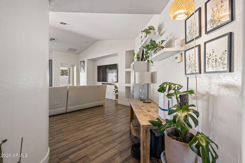 Listing details for 9578 Kingman St, Tolleson, AZ 85353 : Beautifully updated home featuring a neutral palette with crisp white walls and newer wood-look tile throughout. The open-concept layout is filled with abundant natural light, creating a bright and inviting atmosphere. The kitchen offers white cabinetry, granite countertops, and a convenient breakfast bar--perfect for everyday living and entertaining. The spacious primary suite includes a large en-suite bathroom with double sinks. Step outside to a backyard patio ideal for relaxing or hosting. A perfect blend of comfort, style, and functionality!