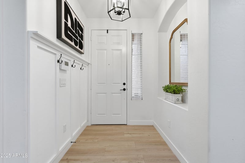 Listing details for 9614 Keats Ave, Mesa, AZ 85209 : Welcome to your dream home in the highly sought-after Augusta Ranch community, where luxury meets convenience in Gilbert's premier school district. This fully remodeled, single-level multigenerational residence has been thoughtfully updated and maintained - truly turn-key and move-in ready. From the moment you enter, 9-foot ceilings, elegant luxury vinyl plank flooring, and abundant natural light create a bright, open atmosphere. Custom window treatments and new blinds add a polished finish throughout. The heart of the home is a show-stopping gourmet kitchen featuring custom cabinetry with designer hardware, a chic subway tile backsplash, and brand-new stainless-steel appliances - perfect for both everyday living and entertaining. The inviting living room features two large windows overlooking the backyard and flows seamlessly into a cozy sitting area with a stunning designer tile fireplace and built-in bar - ideal for entertaining or unwinding after a long day. The spacious primary suite serves as a private retreat with dual vanities and a spa-inspired walk-in shower.