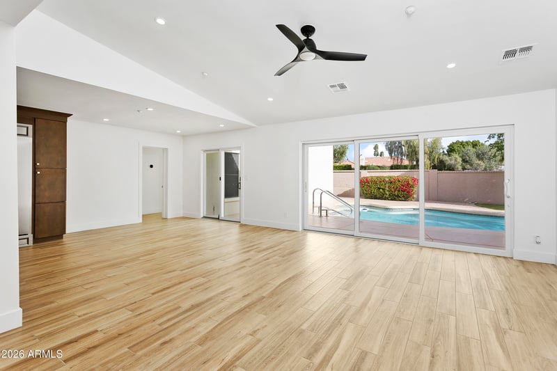 Listing details for 9625 83rd Way, Scottsdale, AZ 85258 : Move in ready luxury home in Scottsdale's McCormick Ranch, located in the desirable Villa Hermosa community. This fully renovated 4 bedroom, 3 bathroom single story home features an open floor plan with vaulted ceilings and abundant natural light. The updated kitchen includes quartz countertops and backsplash, stainless steel appliances, dark cabinetry, and premium porcelain tile flooring. The spacious primary suite offers backyard access, a large walk in closet with built ins, and a spa style bathroom with double vanity, soaking tub, and floor to ceiling tile shower. A secondary bedroom includes a private ensuite, with additional updated bedrooms and baths. Enjoy a private backyard with pool and patio. Close to golf, walking paths, parks, courts, shopping, dining and top amenities.