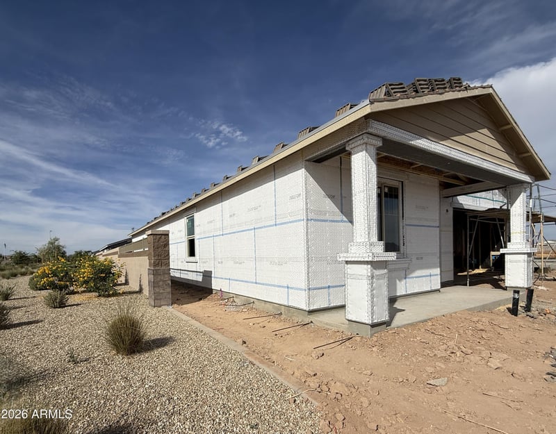 Listing details for 9626 Gaby Rd, Tolleson, AZ 85353 : This stunning Larkspur floor plan offers 1,949 square feet of living space with 3 bedrooms, 2.5 baths, a 5flexible study, and a 2 car garage with a garage door opener. The home features our popular Farmhouse exterior and 8-foot interior doors throughout. The kitchen showcases an Artisan interior collection with a beautiful backsplash, grey 42-inch upper cabinets, stainless steel appliances, and eye catching granite countertops. The home also includes wood like plank tile flooring, white sand quartz and oval sinks in the bathrooms, and carpeting in the bedrooms. Enjoy a 4-panel center sliding glass door, 2-inch white horizontal faux-wood blinds, a water softener loop system, and a driveway with pavers. Additional conveniences include an electric washer and dryer and pre-wiring for pendant lights in the kitchen.