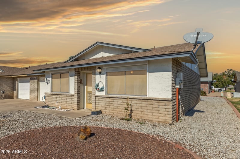 Listing details for 9634 Ironwood Dr #B, Peoria, AZ 85345 : 55+ community home offering low-maintenance living with a comfortable layout. This 2 bedroom, 2 bathroom property features a spacious primary suite with a large walk-in closet. Relax outdoors under the covered patio overlooking a generous lot, ideal for enjoying Arizona evenings. Conveniently located near shops and restaurants with easy access to major roads, making daily errands and commuting simple.