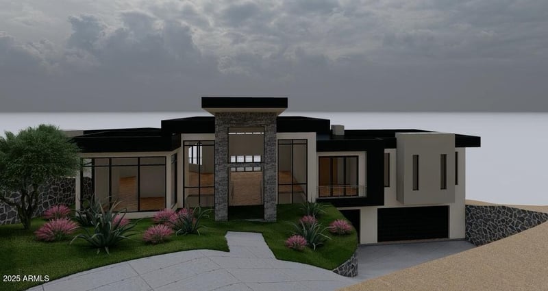 Listing details for 9640 Four Peaks Way #6, Fountain Hills, AZ 85268 : This is a to be built home. Plans submitted to city and will be approved soon. You can buy the lot with plans and build it your self or it can be a pre-sale. Rare opportunity to own a luxurty 6596 sf home on 1.06-acre hillside, golf course lot with plenty of features and breath-taking views. Stunning 6,596 sq ft modern home. Enjoy golf course views plus McDowell Mountains to the north and Four Peaks to the east. Home design includes 4 beds, 5.5 baths, lower-level entertainment area with kitchen, wine cellar, and hidden armory, main-level great room, double island kitchen, office, huge master suite, elevator, 4-car garage, pool, spa, BBQ, and more. Gigantic covered patio for lower level. Private balcony for master bedroom and a separate oversized balcony for outdoor entertainment.