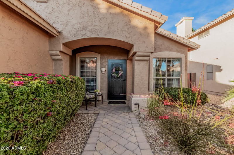 Listing details for 9644 Ludlow Dr, Scottsdale, AZ 85260 : Beautifully updated and meticulously maintained four-bedroom home tucked away on a quiet cul-de-sac in highly desirable North Central Scottsdale. Every inch of this light-filled residence has been thoughtfully upgraded. The heart of the home is the spacious great room, where the kitchen, family room, and eat-in area come together around a stunning floor-to-ceiling stone gas fireplace with a custom mantle. The eat-in kitchen features custom floor-to-ceiling cabinetry, granite countertops, stainless steel appliances, an under-island wine refrigerator, and a pantry with roll-out drawers. Wood-look porcelain tile flows throughout all living areas and two of the four bedrooms, while the remaining two bedrooms feature plush carpet. Soaring cathedral ceilings enhance every room. The formal living and dining rooms provide additional space for entertaining, while the family room opens through expansive triple sliding glass doors to a fully covered patio with cathedral ceilingideal for seamless indoor-outdoor living. The primary suite is a true retreat with a bay window, custom walk-in closet with built-in organizers, and a fully remodeled spa-inspired bath featuring a clawfoot soaking tub, walk-in tiled shower, black vanity with white marble top and brass fixtures, black-framed mirrored doors, and Pottery Barn mirrored medicine cabinets. Enjoy the north-facing backyard oasis with lush landscaping, five mature palm trees, PebbleTec pool, and extensive paver walkways. Additional highlights include a brand-new roof completed in 2025 and whole house exterior paint completed in November 2025, along with beautifully landscaped front and rear yards. Ideally located minutes from shopping, dining, and the Loop 101. A truly special home in a peaceful, established neighborhood. Owner/Agent.