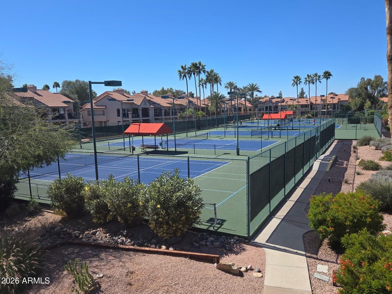 Listing details for 9707 Mountain View Rd #2469, Scottsdale, AZ 85258 : This is the location that everyone wants. The large corner balcony is perfect for your sunny morning coffee or sipping wine watching a beautful Arizona sunset. Located in the center of this resort style community, it is just steps away from the pool, steps from the clubhouse, just steps from the tennis or your covered parking spot. This very popular 2 bedroom 2 bath Courtside Casita has great potential as the perfect seasonal retreat. The resort style gated grounds offers 9 tennis courts, 5 pools, active clubhouse, fitness room, pickleball, tennis pro, on-site masseuse activities director and also free kayaking on Scottsdale Ranch Lake for residents. Close to spring training. shopping, bike and hiking trails and more. Onsite EV charging avail.
