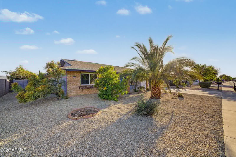 Listing details for 9715 Desert Hills Dr, Sun City, AZ 85351 : Home, sweet home! This thoughtfully upgraded 3-bedroom, 2-bath home features an attached garage, an RV gate, charming brick accents, and a low-maintenance desert landscape. Discover a renovated interior featuring an inviting living room with recessed lighting, a soothing palette, and wood-look flooring. The updated kitchen comes with quartz counters, ample cabinetry, a stylish tile backsplash, built-in appliances, and an island with a breakfast bar. The primary bedroom includes double built-in closets with mirrored doors that enhance the sense of space, a private bathroom, and a walk-in closet. Unwind at the end of a long day in the backyard, complete with a covered patio, a refreshing pool, and abundant space for outdoor relaxation. Don't miss out on this fantastic opportunity!