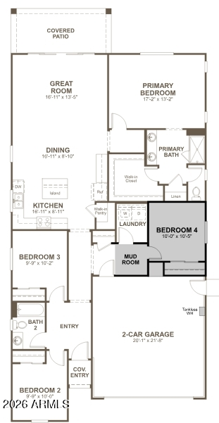 Listing details for 9760 Fraktur Rd, Tolleson, AZ 85353 : The thoughtfully designed Peridot floor plan offers approximately 1,720 square feet of comfortable single-story living with 4 bedrooms and 2- baths. This open-concept layout features a spacious great room that flows seamlessly into the dining area and modern kitchen, complete with a large center island ideal for entertaining and everyday living. The private primary suite includes a generous walk-in closet and well-appointed bath, while three additional bedrooms provide flexibility for family, guests, or a home office. A signature center-meet ''Wall of Glass'' slider creates a seamless indoor-outdoor connection to the backyard. Located within the gated community of Vista del Sur, residents enjoy modern design, energy-efficient construction, and convenient access to shopping, dining, and major freeways.