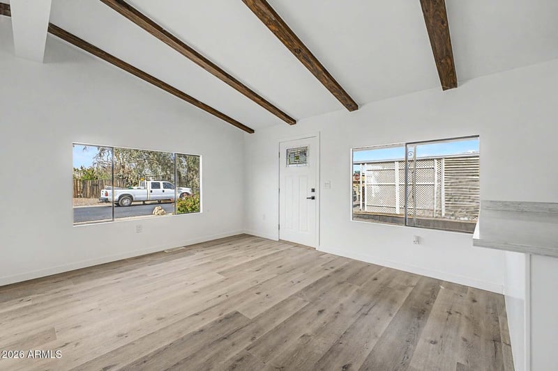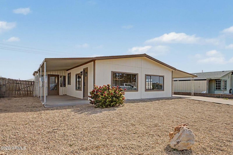 Listing details for 9761 Flossmoor Ave, Mesa, AZ 85208 : Completely remodeled 2bed, 2 bath manufactured home featuring all-new premium vinyl flooring, updated fixtures and modern lighting throughout. Enjoy fresh interior and exterior paint, plus new cabinets and countertops in both the kitchen and bathrooms for a cohesive, move-in-ready feel. Exterior highlights include a 2-car tandem carport and separate storage building, offering plenty of room for tools, hobbies, or extra belongings. A beautifully updated home with functional space and stylish finishes.