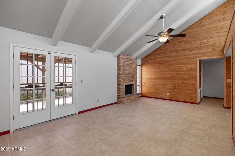 Listing details for 9790 Baylor Dr, Fountain Hills, AZ 85268 : Highly Desirable Single-Level Patio Home w/2-Car Garage. This beautifully maintained & recently remodeled patio home offers comfort & style. The inviting grt rm features vaulted ceilings, lots of natural light, & a stone-accent fireplace, creating the perfect space for relaxing or entertaining. New knotty pine accent walls, knotty hickory cabinetry, & gorgeous granite countertops, giving it a warm, rustic feel. A formal dining room w/wet bar provides an ideal setting for gatherings, while the kitchen with a bright breakfast room offers both functionality & charm,w/ large skylite. Enjoy indoor-outdoor living w/4 sets of French doors w/security doors opening to front & side patios, perfect for morning coffee or evening relaxation. Spacious master bed features a large closet & updated bath.