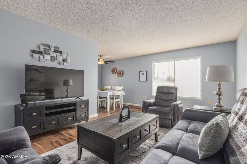 Listing details for 9806 Lancaster Dr, Sun City, AZ 85351 : Welcome to this charming Sun City home featuring 2 spacious bedrooms and 1 full bathroom with a walk-in shower. Enjoy indoor-outdoor living with two private patios, perfect for relaxing or entertaining. The garage includes dedicated golf cart parking, adding convenience for the Sun City lifestyle. Nice furnishings are included with the purchase, making this home truly move-in ready.