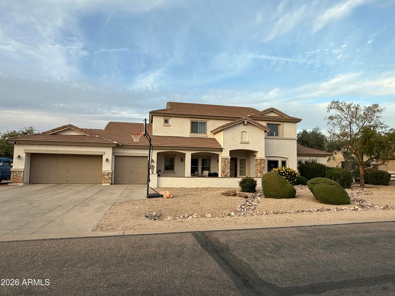 Listing details for 9814 Prospector Dr, Queen Creek, AZ 85144 : Pride of ownership shows throughout this meticulously maintained and beautifully updated home. The thoughtfully designed floor plan features 5 beds, 3 baths, a spacious loft, and a remodeled casita, ideal for guests, multigenerational living, or a private office. The primary bedroom is located downstairs, offering privacy and convenience and the beautifully updated kitchen shines with granite countertops, a large island, perfect for entertaining. Major upgrades include new AC units, windows, and roof, providing peace of mind for years to come. Set on an expansive 3/4+ acre lot, the property offers ample room for toy storage, horses, or future expansion. Enjoy stunning mountain views from your resort-style backyard complete with a sparkling pool, built-in BBQ, and outdoor fireplace.