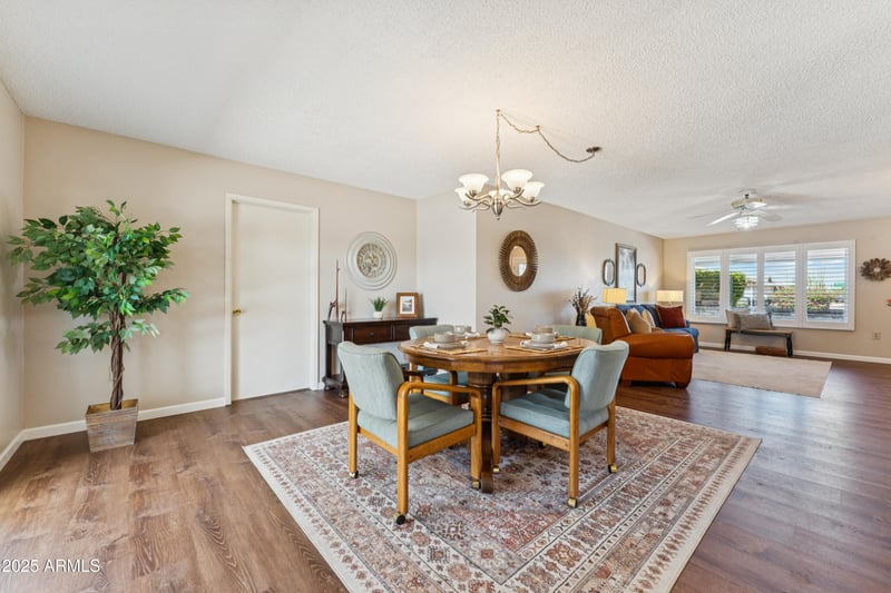 Listing details for 9831 Pebble Beach Dr, Sun, AZ 85351 : Beautifully refreshed 2-bedroom, 2-bathroom home offering just over 1,240 square feet of comfortable living space. Inside, you'll find brand-new flooring, upgraded dual pane windows, new paint that creates a bright, well maintained feel throughout. The spacious layout includes a private primary suite perfect for relaxed mornings & easy evenings. A dedicated laundry room adds convenience & ample storage, ensuring everything has its place. Large enough for an office space too. Whether you're enjoying the quiet neighborhood or exploring Sun City's renowned amenities, golf courses, recreation centers, and community pool, this home delivers the ideal blend of style, function, & location. Sellers currently have solar lease. Buyers option to keep the solar or have seller remove.