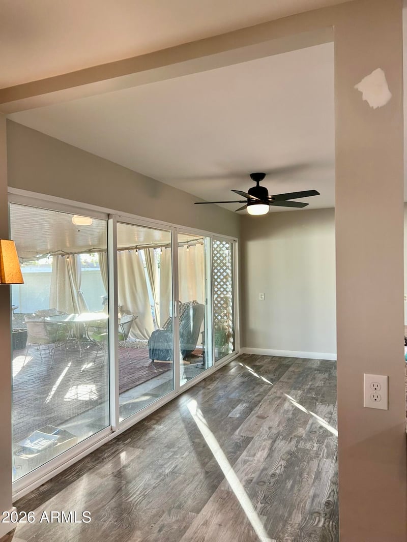 Listing details for 9831 Wrangler Dr, Sun, AZ 85373 : Tastefully updated and ready for your personal touch! Two bedrooms and two bathrooms in Sun City. Updated kitchen and family room open through a recently added double-glass slider door into the massive private backyard, with a generously sized covered patio and newer white fencing. Sun City offers an active adult lifestyle known for its resort-style amenities, including multiple golf courses, recreation centers, fitness facilities, pools, clubs, and year-round social activities. Residents enjoy low-maintenance living, beautiful desert surroundings, and convenient access to shopping, dining, medical services, and entertainment. With its welcoming community atmosphere and strong sense of connection, Sun City remains one of Arizona's most desirable 55+ destinations.