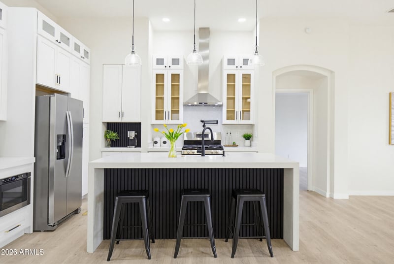 Listing details for 9846 Cedar Waxwing Dr, Sun Lakes, AZ 85248 : Exquisitely remodeled home located in the prestigious community of Sun Lakes. Thoughtfully Redesigned with Timeless Finishes and Modern Comfort in Mind, This residence Offers a Split Plan with 3 Spacious Bedrooms,Sitting Area With Bar, Plus a Private Office-Ideal for Guess, Hobbies, or a Work-From-HomeSpace. Completing the Home is a Spacious two-Car Garage plus A dedicated Golf Car Garage. At The Heart of The Home, the Fully REDESIGNED Kitchen Features Custom Cabinetry, Stunning Quartz Countertops, a Dramatic Quartz Waterfall Island Anchors the Space. ALL NEW PLEX PLUMBING Throughout and New Roof Underlayment, 2022 A/C Adds Long-Term Value and Peace of Mind. Residents Enjoy Golf,Resort Pools, Fitness Centers,Tennis and Pickleball Courts,On-Side Dinning, and a Vibrant Social Calendar.