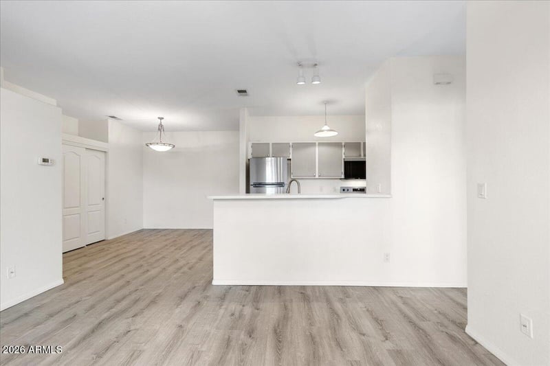 Listing details for 985 Mingus Ave #314, Cottonwood, AZ 86326 : Adorable 1015 sqft. 2-bedroom lower-level condo located in the desirable Casa Del Sol subdivision! The spacious primary suite features a walk-in closet, bathroom with a step-in shower, while the hall bathroom offers a full tub/shower combination-perfect for guests or additional flexibility. The kitchen is equipped with brand-new stainless steel appliances, a convenient breakfast bar, and a dining area, providing both functionality and comfort. Cozy up by the gas fireplace or step outside through the sliding glass door to enjoy your covered patio space. Additional highlights include a pantry and in-unit laundry for added convenience. The second bedroom also offers generous closet space, making this home both practical and inviting. Located steps away from community pool and fitness space.