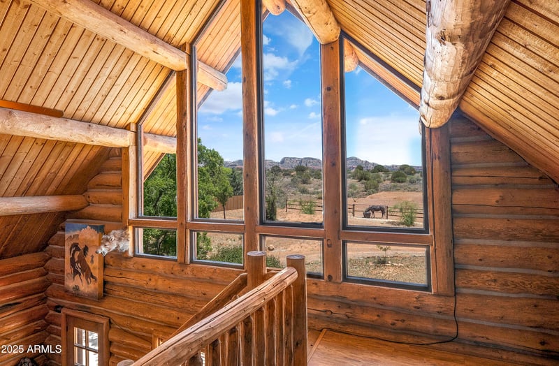 Listing details for 9900 Sycamore Pass Rd, Sedona, AZ 86336 : This stunning horse property sits on 5 ACRES in Sedona!!! Completely fenced and gated estate with stunning panoramic red rock & mountain views. Direct access to the pristine NATIONAL FOREST trails!!! Main house is a 2 bedroom, 1bath, log home that feels so spacious with the loft & large windows providing plenty of natural light. The gorgeous kitchen has stainless steel appliances, granite counter tops, filtered water, walk in pantry, and large island/breakfast bar. Dog run, chick coop, & back paved patio perfect for BBQ's, soaking in some sun or even stargazing. The studio with a 3/4bth 608sqft Bunkhouse was built in 2018. Large mature trees provide shade & owner recently planted 8 more trees. Horse Barn w/ 6 stalls, heaters, wash area, tack room, catch room, arena, & more. The main house even has a potential 2nd bedroom! Refer to custom features page for more info