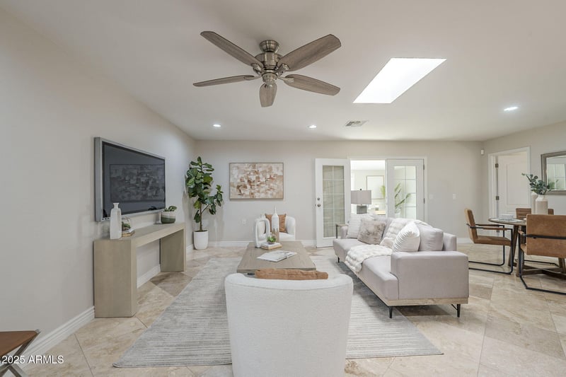 Listing details for 9917 Shiprock Dr, Sun, AZ 85351 : This three-bedroom, two-bathroom home offers approximately 1,909 square feet of living space. The property features polished travertine flooring throughout, creating a sophisticated and elegant atmosphere. The spacious floorplan boasts an open concept design, ideal for entertaining guests and everyday living. The home's newly remodeled kitchen is a true standout, with stainless steel appliances and ample counter space for the most discerning chef. The large, enclosed backyard provides a private and tranquil outing, perfect for relaxation or outdoor activities.