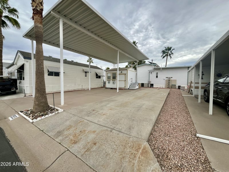 Listing details for 993 Prospector Dr #993, Apache Junction, AZ 85119 : Own your land, welcome the pets, & settle into the resort lifestyle you have been looking for. This premium lot in the desirable Pet Section of Golden Vista Resort is completely improved with a full concrete pad, full utility hookups, a covered carport with a durable metal awning tall enough to accommodate larger vehicles, & a well finished storage shed ready for all the extras that do not fit inside your RV. Take in stunning Superstition Mountain views while you park your RV today or plan ahead for a future park model, all without the burden of lot rent. Golden Vista offers an active, amenity rich setting with countless clubs, events, & activities including softball, pickleball, bingo, quilting with a long arm machine, & so much more. Best of all, this sought after pet friendly location means your furry companions are welcome to enjoy it right along with you.