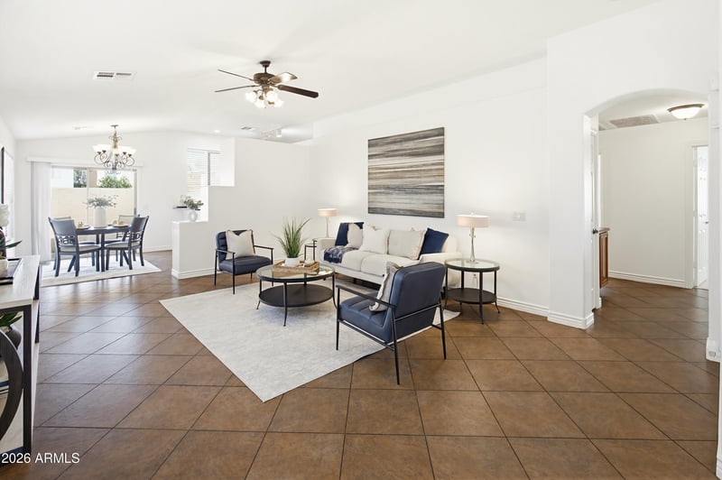 Listing details for 9934 Atlantis Way, Tolleson, AZ 85353 : Welcome to this beautiful home in the highly sought-after community of Sunset Farms! Offering 3 spacious bedrooms plus an open den, this home features a bright and airy floorplan with soaring vaulted ceilings and a generous open living area that's perfect for both relaxing and entertaining. Tile flooring runs throughout the main living spaces, complemented by brand new carpet and fresh interior paint for a clean, move-in-ready feel. The kitchen is designed with functionality in mind, boasting 42-inch cabinets, a walk-in pantry, and abundant storage to keep everything organized. The primary suite is a peaceful retreat with a garden tub, dual sink vanity, and plenty of space to unwind. Step outside to a nicely sized backyard with no neighbor behind, offering added privacy and open views. Conveniently located near the Shops at Pecan Promenade with a variety of restaurants and shopping options just minutes away, this home combines comfort, style, and location. Don't miss your opportunity to make it yours!