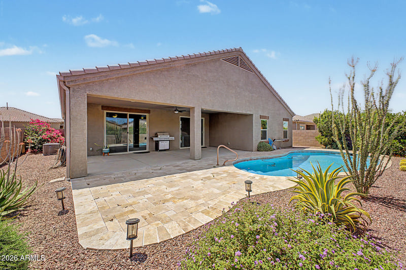 Step outside, and the view only gets better. Enjoy a covered patio, paver seating area, and a sparkling pool, all set against those incredible mountain views that make every sunrise and sunset feel wonderful. This is the kind of home that feels right the second you walk in.