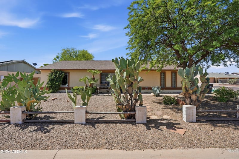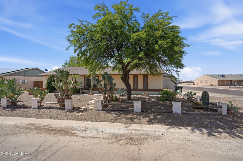 Listing details for 9989 Camelia Dr, Arizona City, AZ 85123 : Skip the ''to-do'' list and move right in to this beautiful Arizona City 3-bedroom home! Key updates: New Roof (2022), New Exterior Paint (2025), New Garage Door (2024), New Carpet in 2 Bedrooms (2026) This home is turn-key with all appliances included (Kitchen fridge, W/D, plus bonus fridge). You'll enjoy easy-care tile flooring throughout with new carpet in primary and 3rd bedrooms. The outdoor space is made to enjoy with friends and family with a built-in BBQ/sink station, a cozy fire pit and an extended patio. Backyard also features large shade trees and a wonderful grassy area. This property also offers 2 large storage sheds plus a dedicated workshop/hobby room with portable AC. Great corner lot property with side entry 2 car garage. This is the home you've been waiting for!